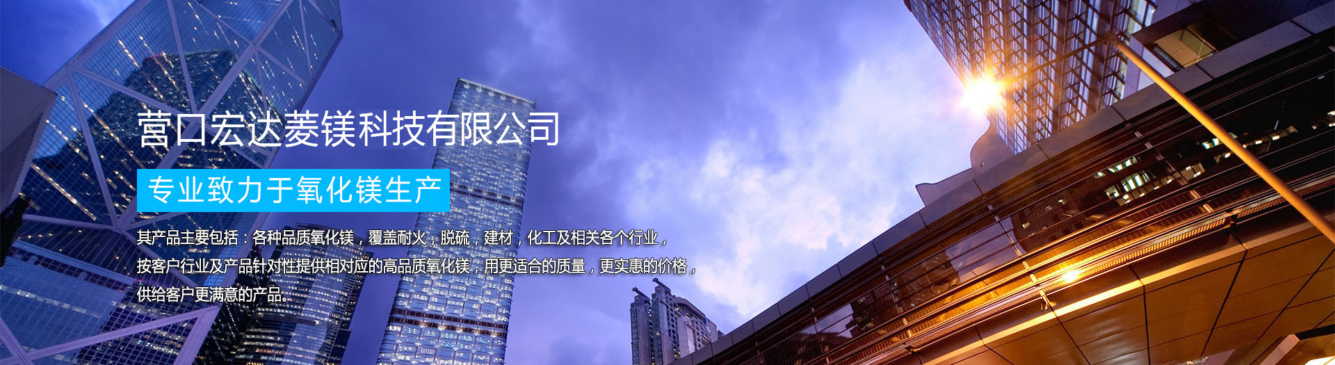 營口宏達菱鎂科技有限公司是一家專業以氧化鎂為主的企業,成立于2009年,公司自創立以來一直專業致力于氧化鎂生產,不斷發展壯大,始終發揚“誠信務實,質量至上”的企業宗旨,以“品質,服務”為立業之本的企業精神,并形成一套嚴格把關的產銷模式。